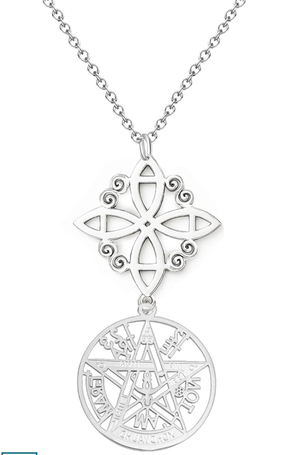Colgante de acero inoxidable con Nudo de bruja y tetragramaton, cadena de 50cm